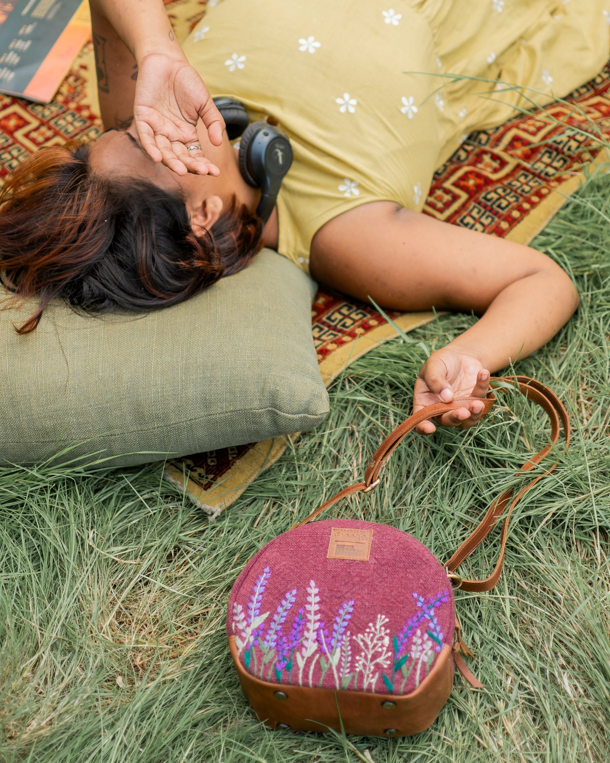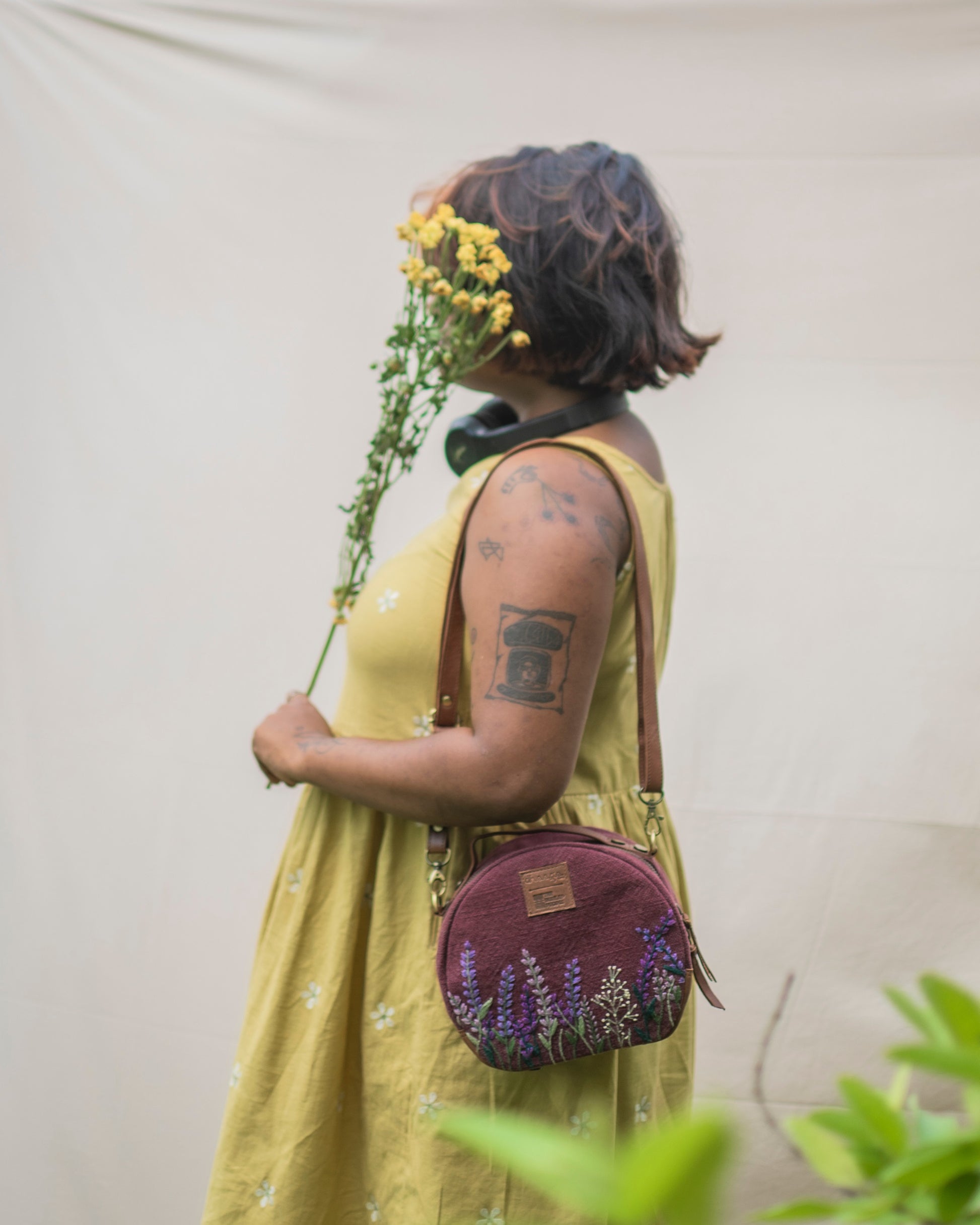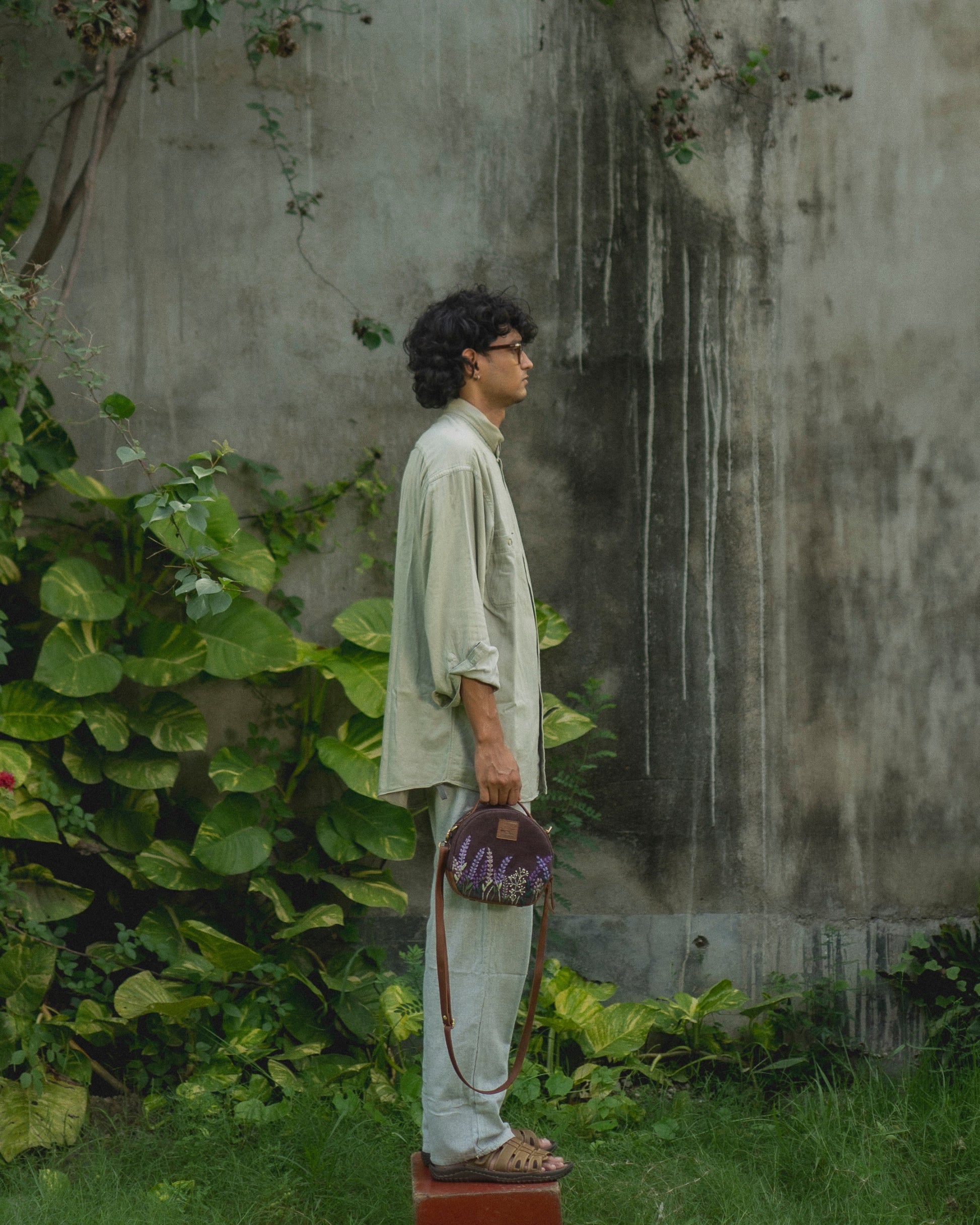This hand-embroidered Minx Sling Bag is created in collaboration with Dhaaga and features subtle floral motifs stitched by hand across the surface. Each embroidered detail is added individually, giving every piece slight variation and character.