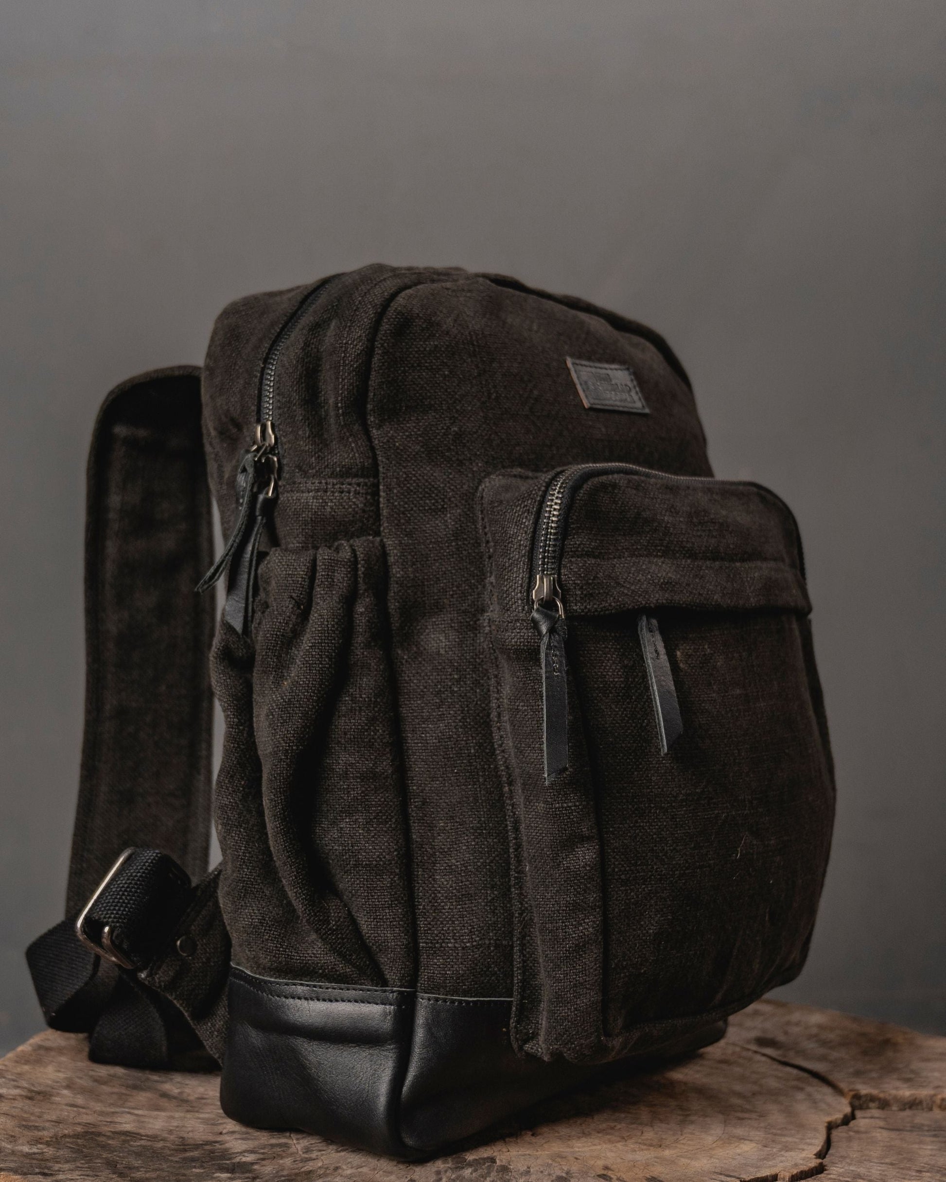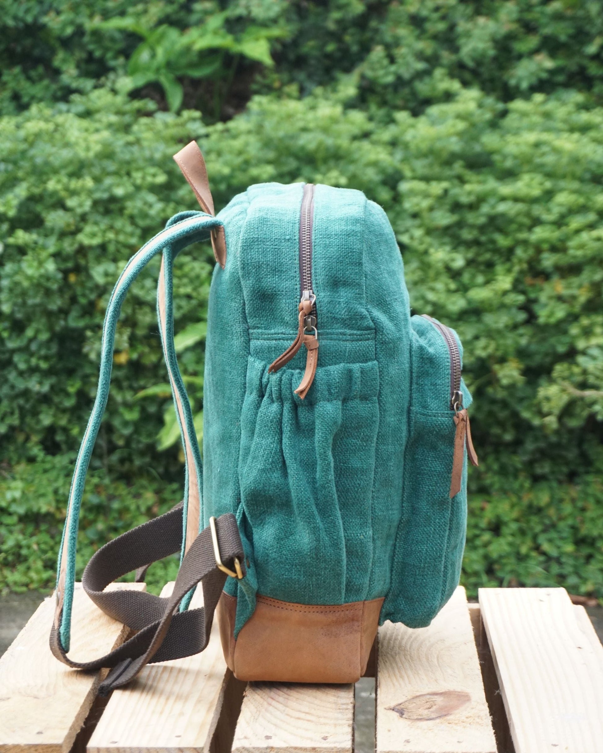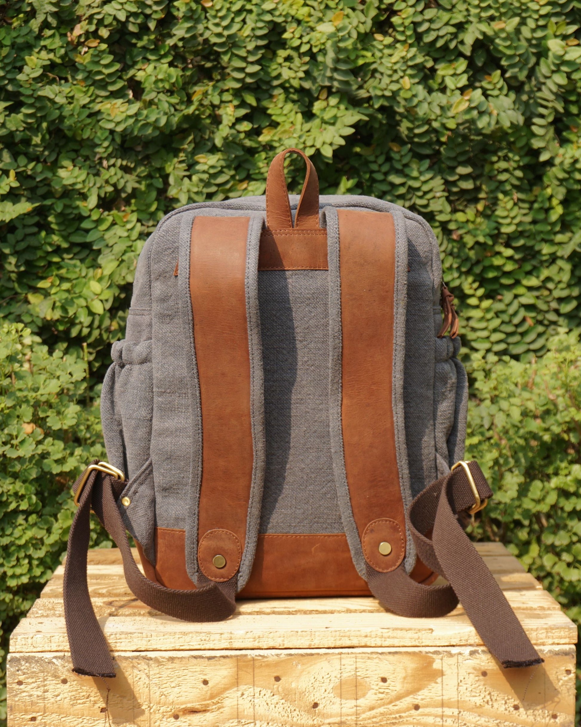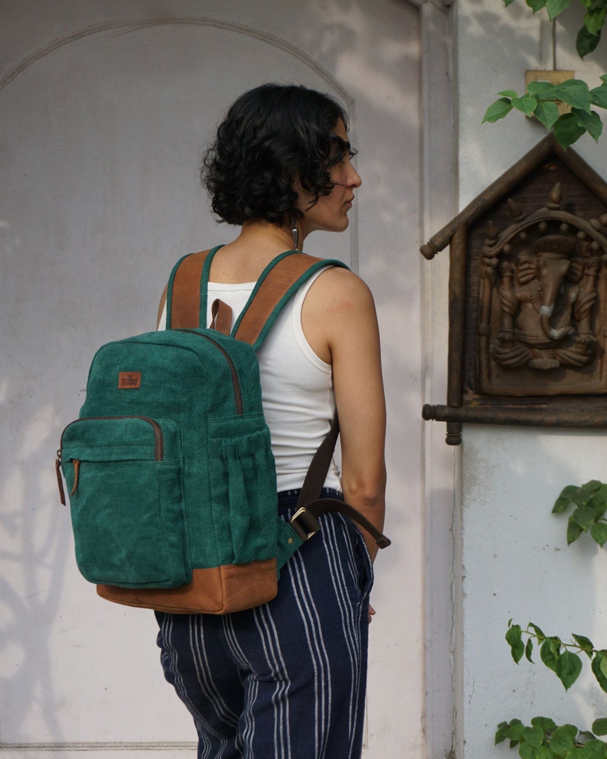 The Awkward Cousin Backpack was named (clearly!) because it's mid-way between the Little Sister and the Big Brother. A perfect, utilitarian backpack that's elegant, unisex and travels well, you'll notice the similarities between this and our Vegan Warrior, but the Awkward Cousin comes with a sturdy leather base perfect if you plan to haul a laptop around or place this baby on forest/ train/ office floors.