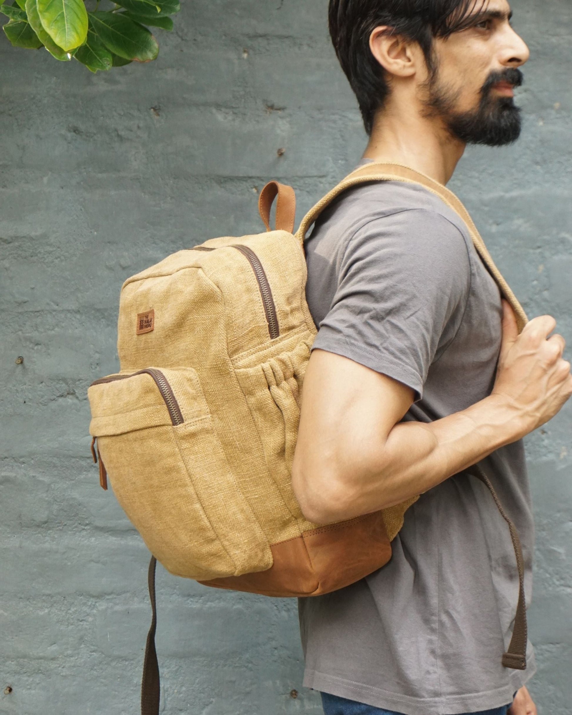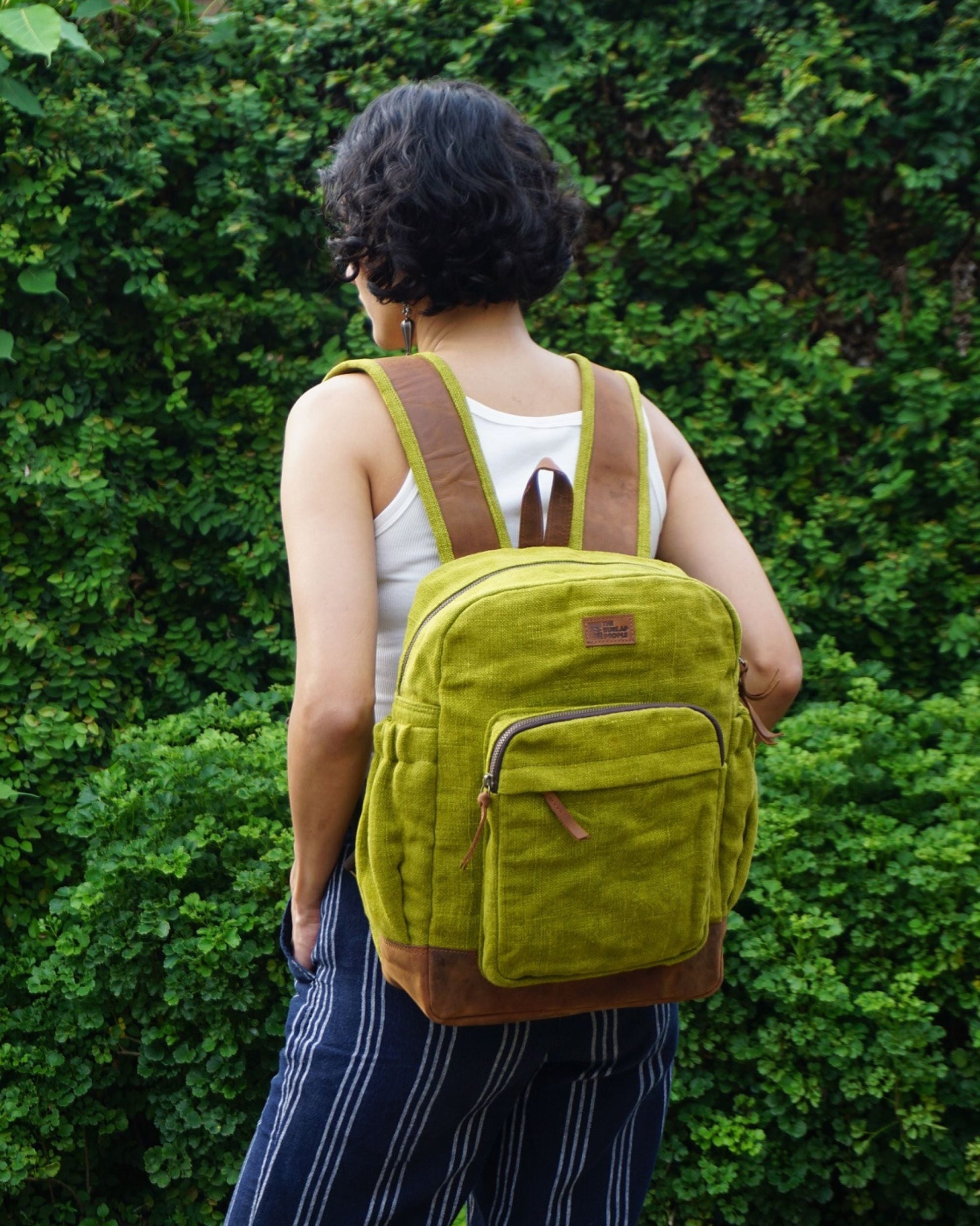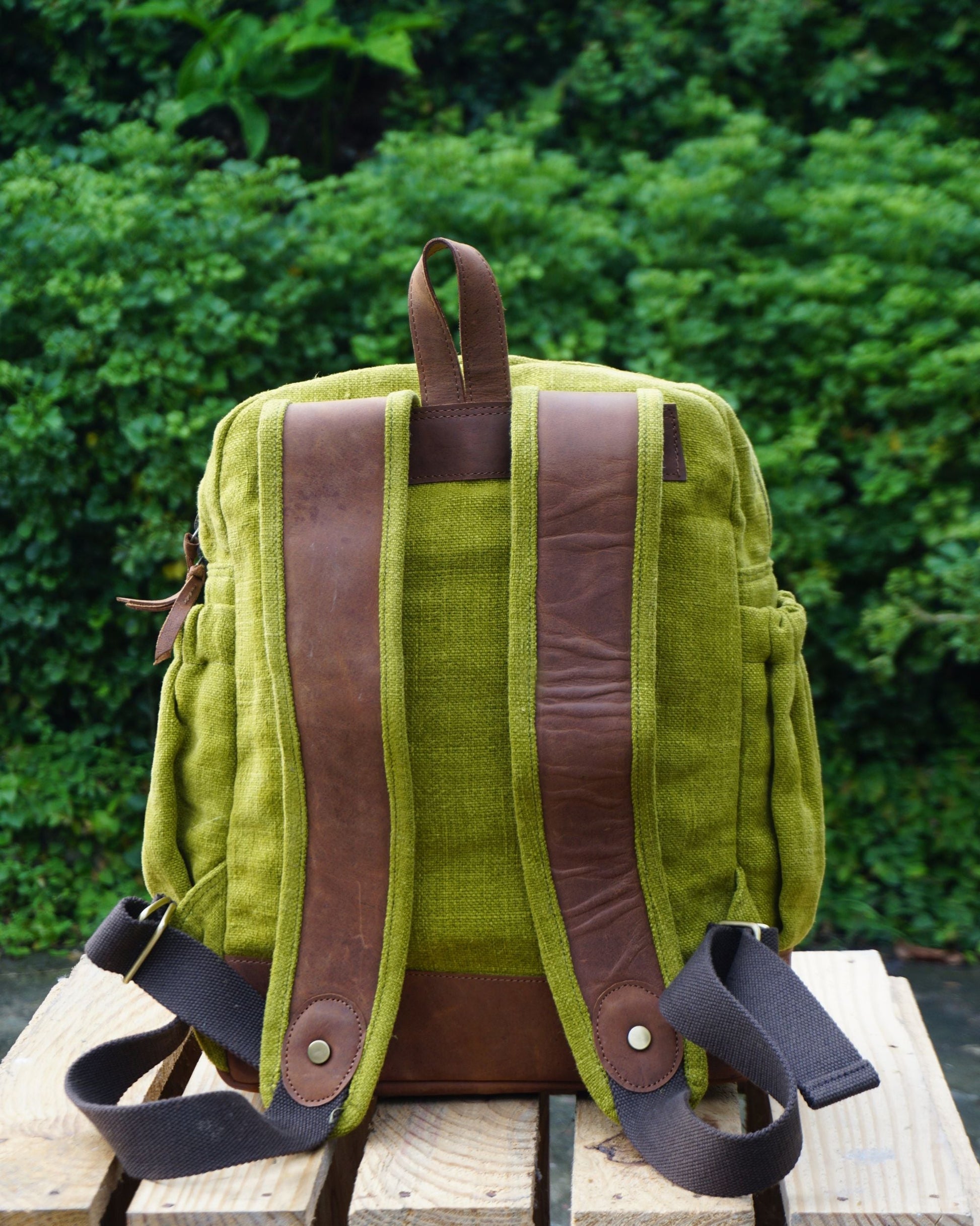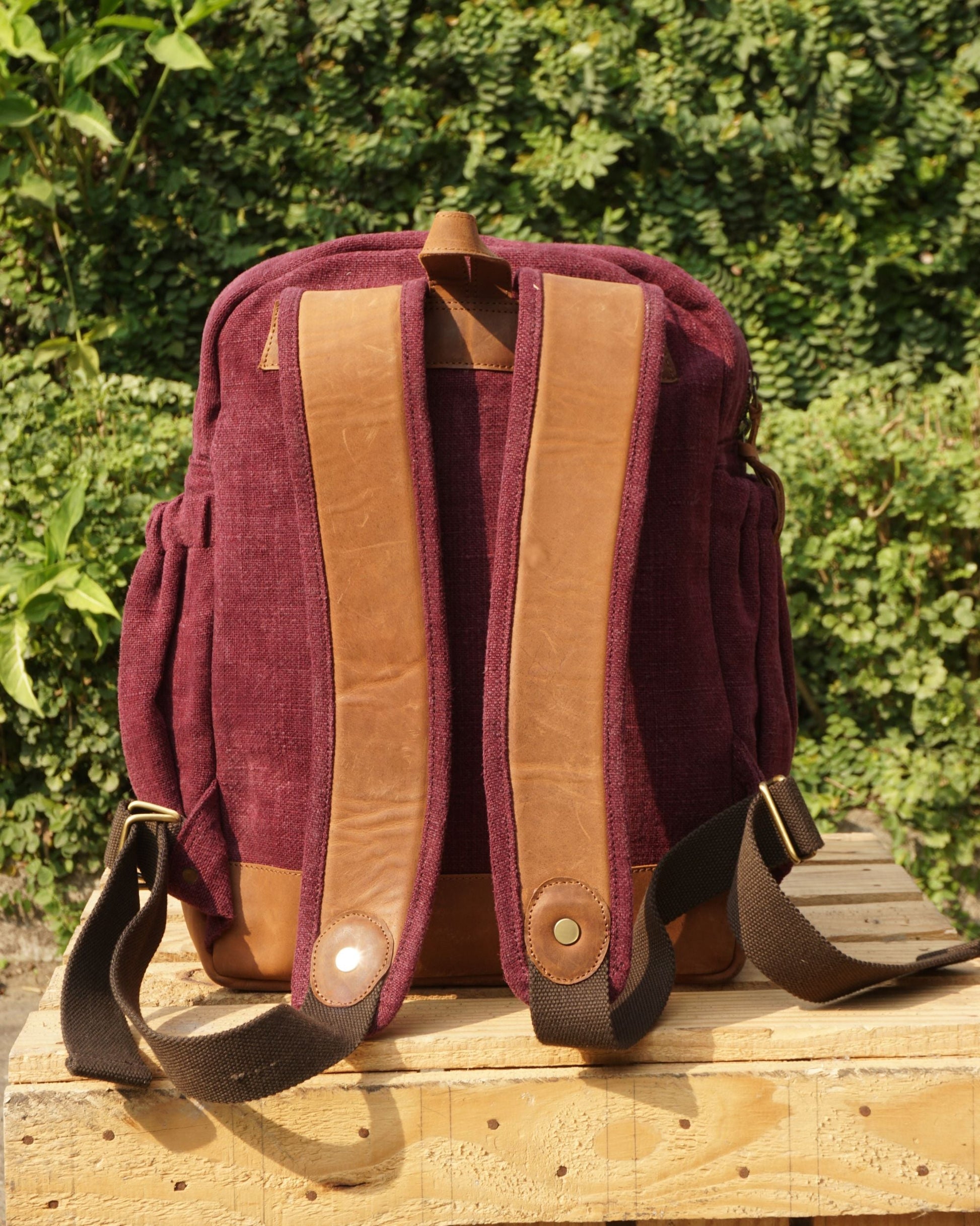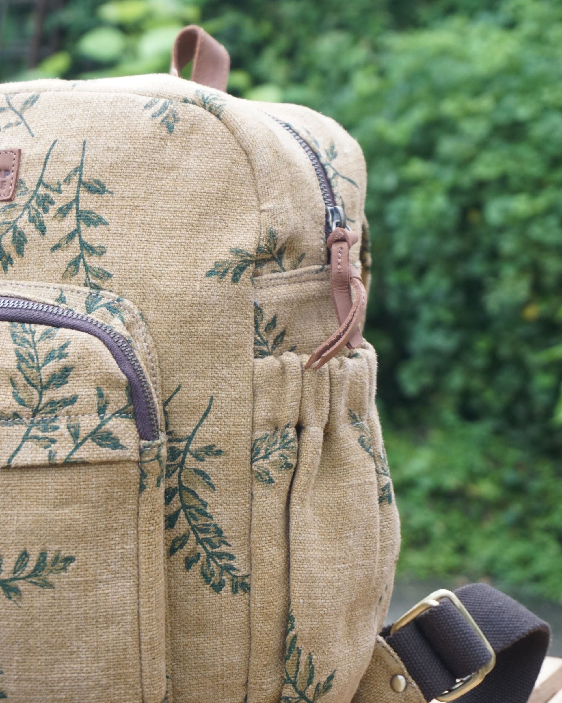 The Awkward Cousin Backpack was named (clearly!) because it's mid-way between the Little Sister and the Big Brother. A perfect, utilitarian backpack that's elegant, unisex and travels well, you'll notice the similarities between this and our Vegan Warrior, but the Awkward Cousin comes with a sturdy leather base perfect if you plan to haul a laptop around or place this baby on forest/ train/ office floors.