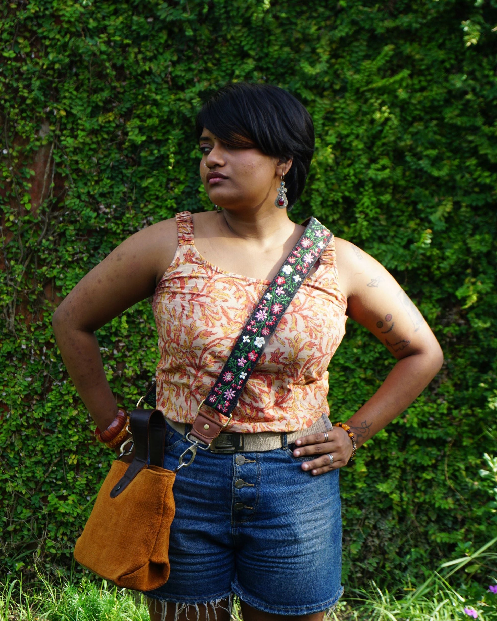 This strap is hand-embroidered with flowers — soft craft on sturdy weave. Strong enough to carry weight, delicate enough to add charm. Clip it on to any bag, and it turns into something a little more personal, a little more yours.