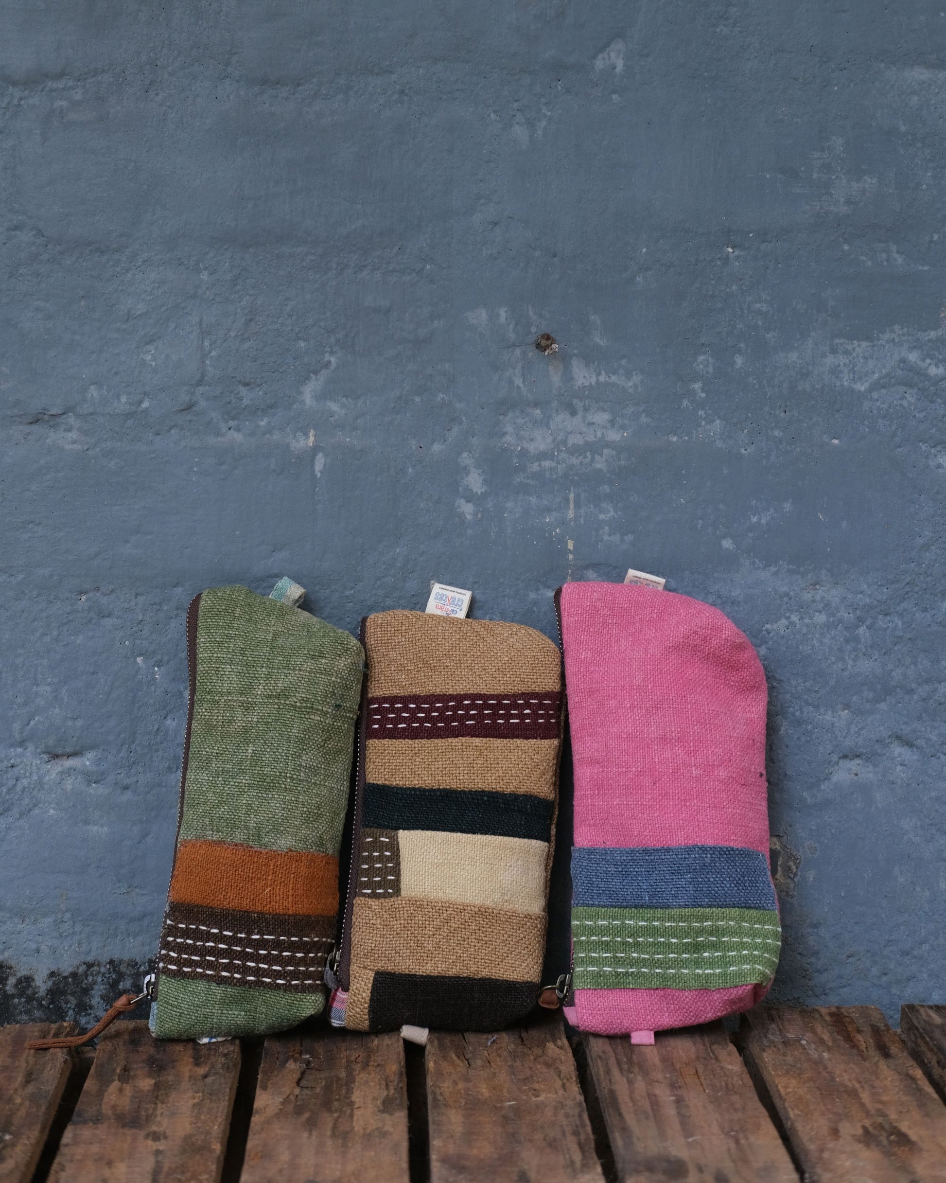 The Ek tara Pencil Bag is made from surplus fabrics and stitched by women artisans in Bengal as part of a sustainable livelihood initiative.